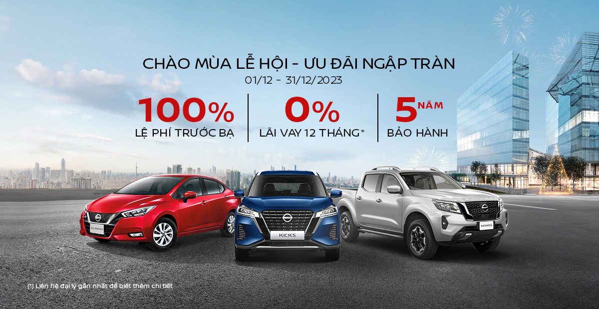 Nissan Việt Nam tung ra chương trình ưu đãi lớn cho tất cả dải sản phẩm Nissan, áp dụng cho khách hàng ký hợp đồng và đặt cọc toàn bộ xe Nissan từ 01/12/2023 – 31/12/2023, thông tin chi tiết như sau: